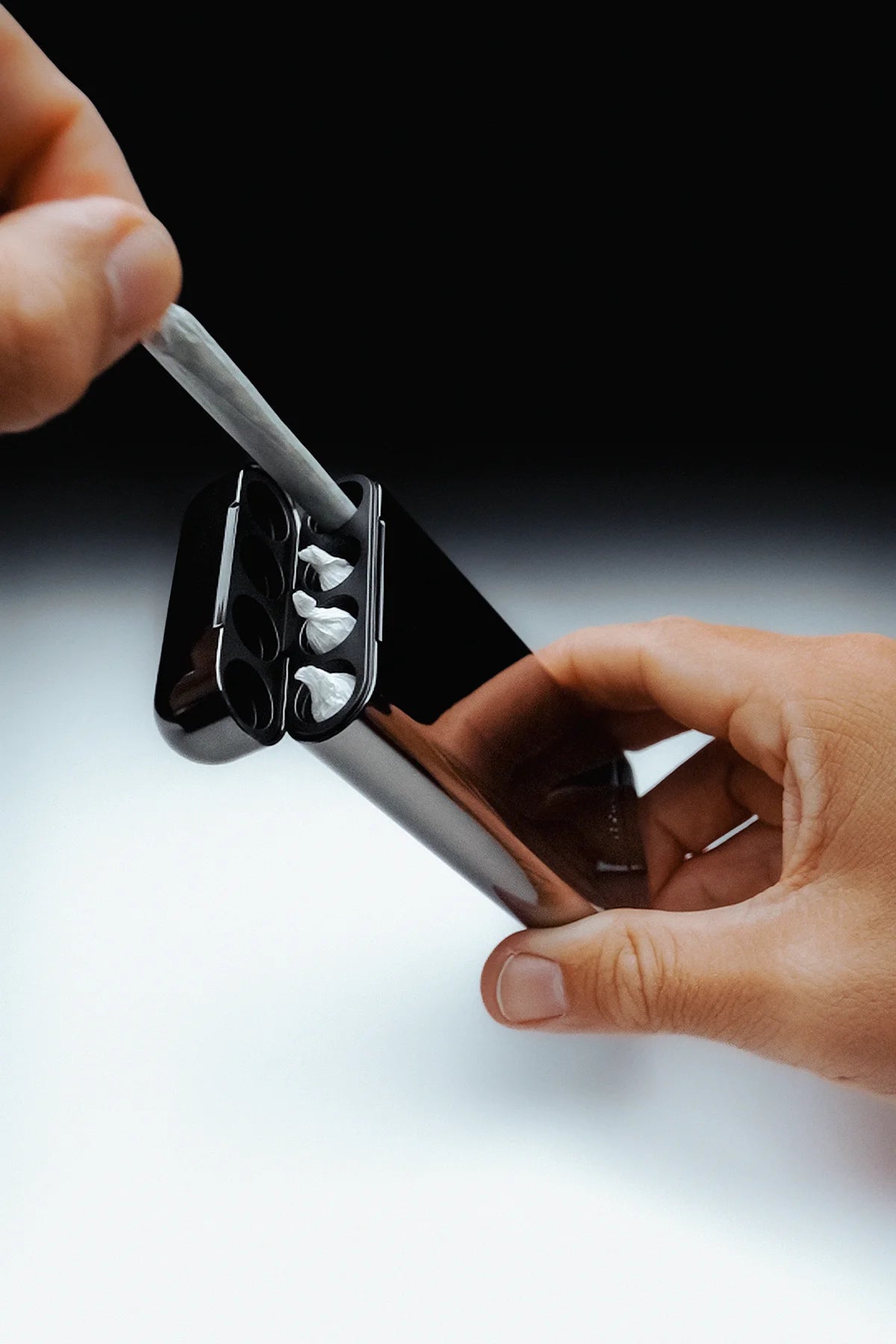 The Carry Case is a pocket-sized statement piece, thoughtfully designed to carry your cones at all times. Crafted in anodized and hand-polished aluminum and equipped with a firm magnetic lid. It also features an airtight base compartment where you can discretely store your half-smoked cones. Fits four king-size cones perfectly.